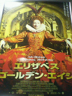 行って来ましたvケイト・ブランシェットのエリザベス1世、人間味溢れていてとてもよかったです。私は衣装、髪型や宮廷内の描写が最大関心事だったのですがピーター・パンやドレイク船長等、海賊が欧米のファンタジーの中で暖かい眼で扱われているのは何故?やスペインの『無敵艦隊』って『無敵』だったんでしょう?英国はどう破ったの?等、長年気になっていた素朴な謎も解けてスッキリ^^百聞は一見にしかず。世界史も○倍楽しくなるのでオススメ。WANER MYCAL CINEMAS よかったです!!駅から自宅への散歩コースにシネコンがあるのは最高vロビーも化粧室も広々綺麗で座席の座り心地、角度、ゆったりと見やすく、ドリンクホルダーやキッズシートも勿論完備。キャラメルポップコーン(\400)は指にべたつかず、最後迄ポリっと美味しかったですよv(私的にはTDLのより↑と思いましたv)